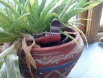 Each one sits on top of a stake that you simply push into your pot. To hide the stake use some artificial moss, leaves and/or branches to wrap around.