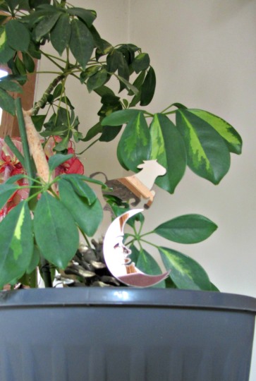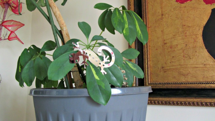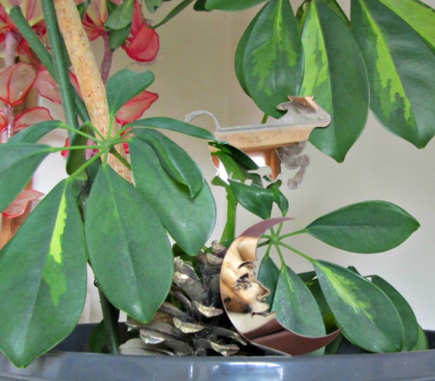 Each one sits on top of a stake that you simply push into your pot. To hide the stake use some artificial moss, leaves and/or branches to wrap around.